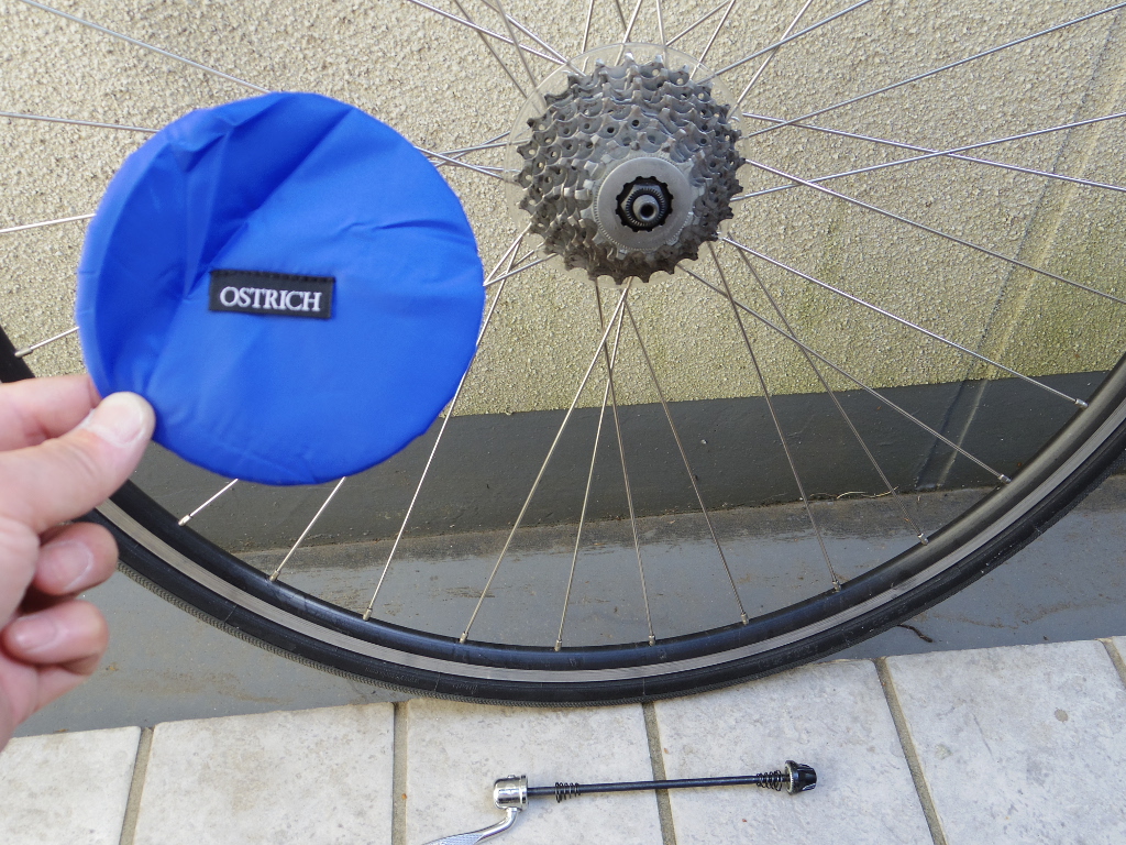 このタイプ(縦型収納)の輪行袋にロードバイクを収納するために絶対に必要なものは「エンド金具」です。あとチェーンカバー、フリーカバー、フレームカバーなど、あると便利なものはありますが、私はフレームへの被害が最も予想されるスプロケット周辺の手当てをするために、フリーカバーは購入しました。