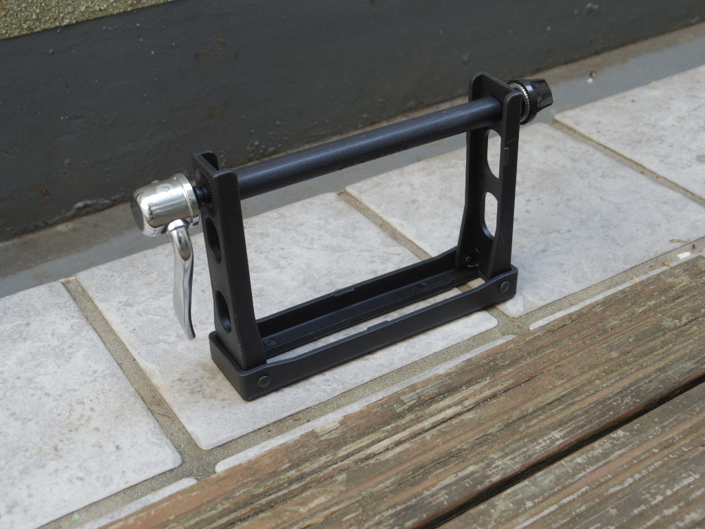 MARUTO製のエンド金具は樹脂製で、クイックリリースシャフトを通す樹脂製のパイプを中に入れて折りたたむことができるようになっています。