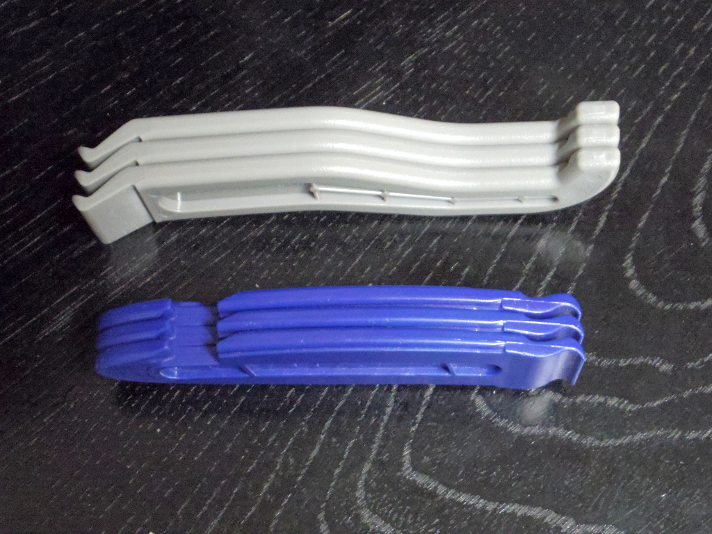 タイヤレバーは大抵3本まとめて持っていきます。まとめた時のコンパクトさもシュワルベの方が勝っています。