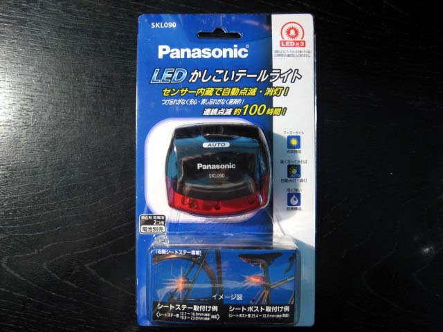 この自転車には、安全装備として反射板が付いていますが、積極的に点滅して後方の車両に存在をアピールするテールランプが付いていません。そこで、暗くなると自動点滅を開始する Panasonic のテールランプ NL-920Pを購入・装着することにしました。