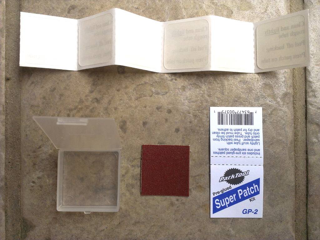 チューブのパンクを直すのに必要なパッチですが、ゴム糊が不要な物を購入しました。限りなくコンパクトなパークツール・スーパー・パッチ GP-2 です。 |