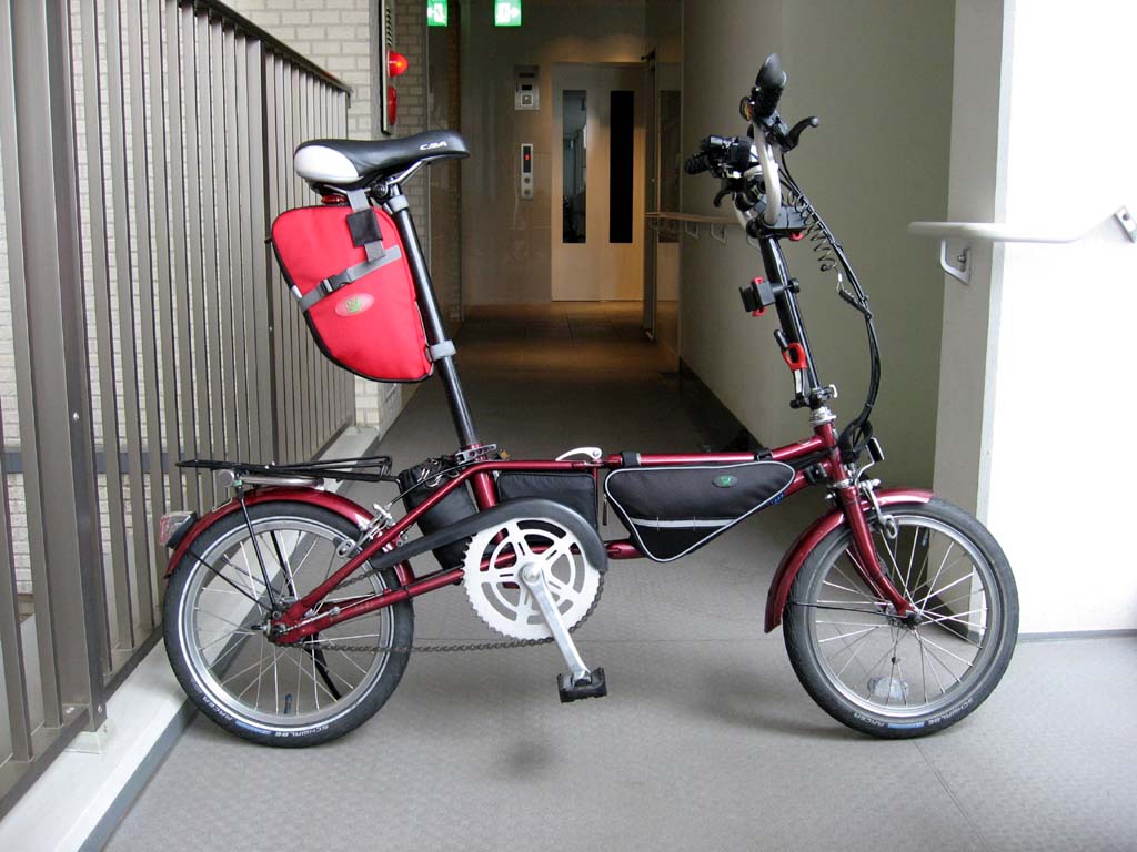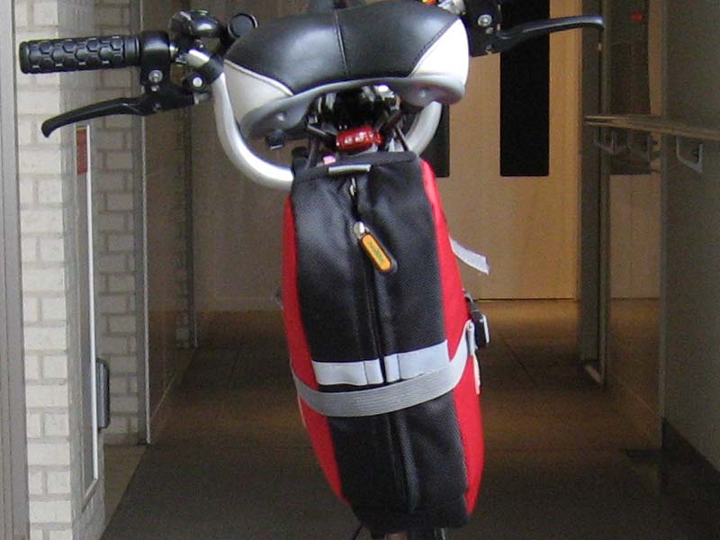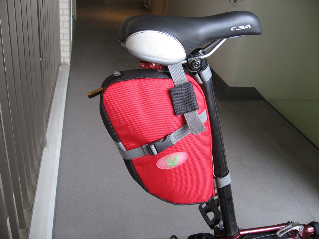 小径車は長いシートポストが特長的です。その長いシートポストを利用した大容量のサドルバッグを購入しました。 |