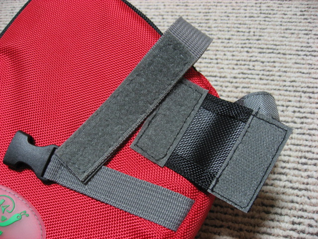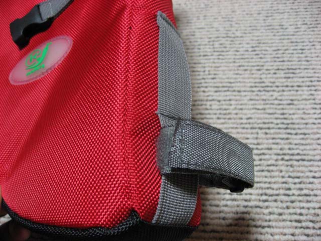 シートポストに固定するベルトの下の方は、このようにバッグに装着する位置が選択できるようになっています。