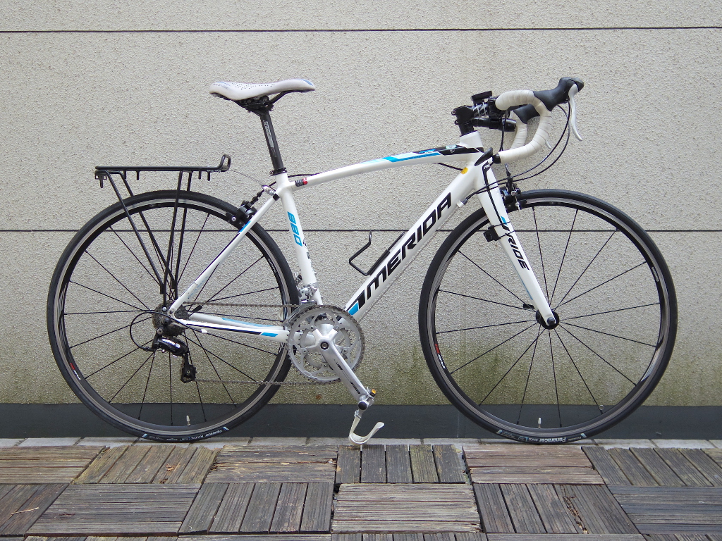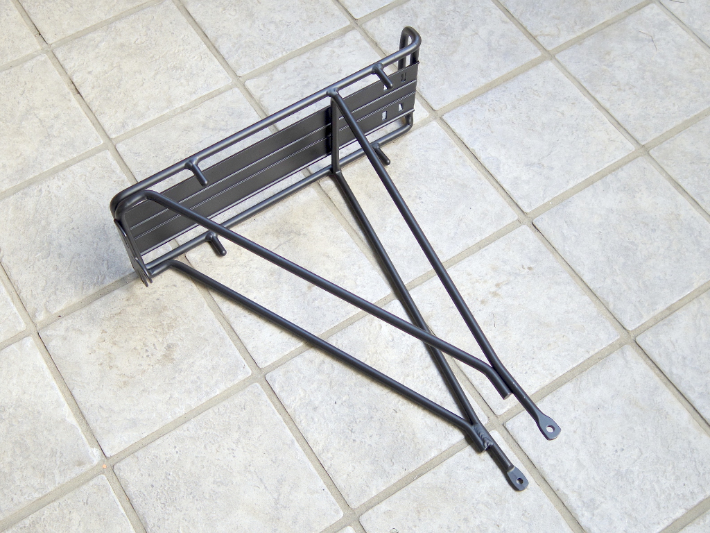今回はロードバイクに一般的なリアキャリアを取り付けることを目的とします。すでにキャリアは調達していて、「サイクルベースあさひ」で購入したオリジナルアルミリアキャリア「CBA-1」です。