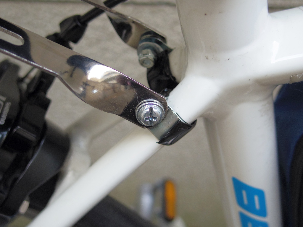 ただし、何とか装着はできましたが、このキャリアに付属のシートステー用クリップはあまりに廉価なもののため、装着一回目で、保護のための樹脂がはがれてしまいました。