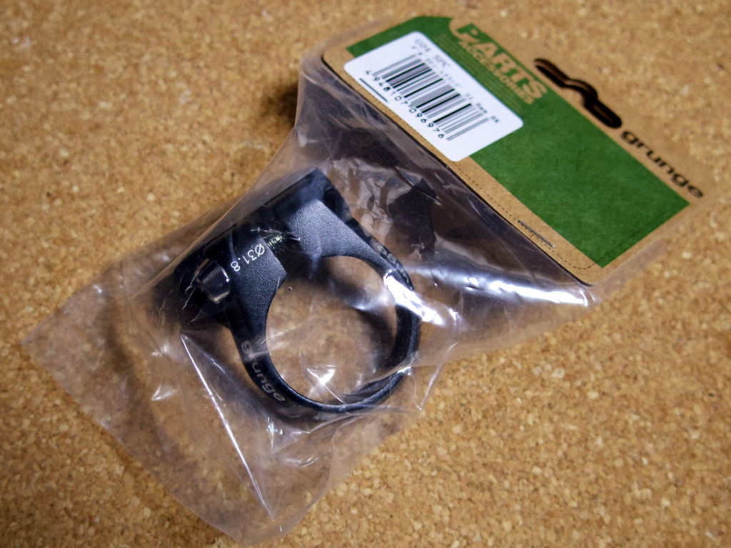 私の持っているロードバイクは極めて一般的なアルミフレームバイク。シートチューブの径は一般的な 31.8mmで、この「グランジ キャリアダボ付シートクランプ」がドンピシャで適合しました。