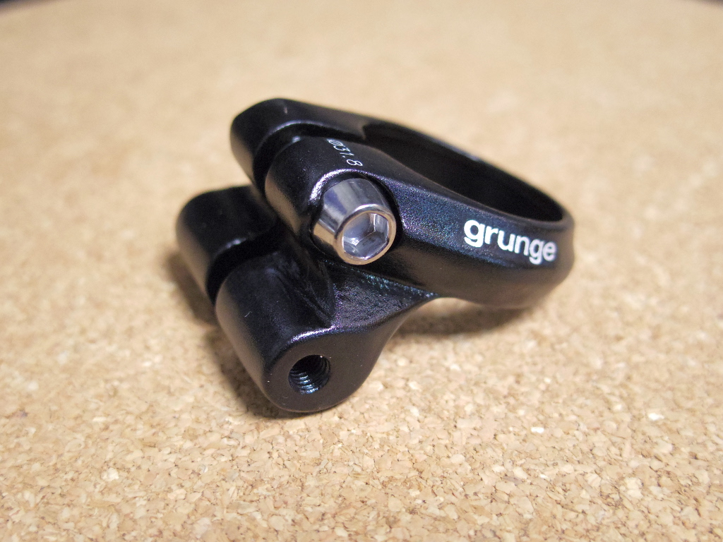 そこで、シートステー側のダボ穴も手当てする必要が生じました。幸いにも、この件の解決策としても有効な商品が販売されています。それが、「グランジ キャリアダボ付シートクランプ」です。