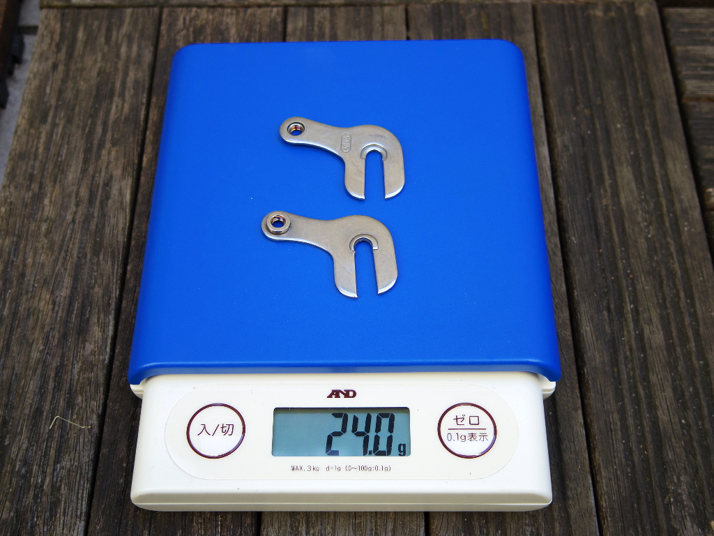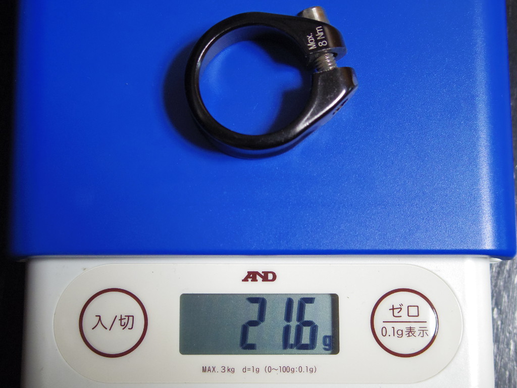 参考として重量変化を確かめておきます。ダボなしのMERIDA純正シートクランプの重量は21.6g。