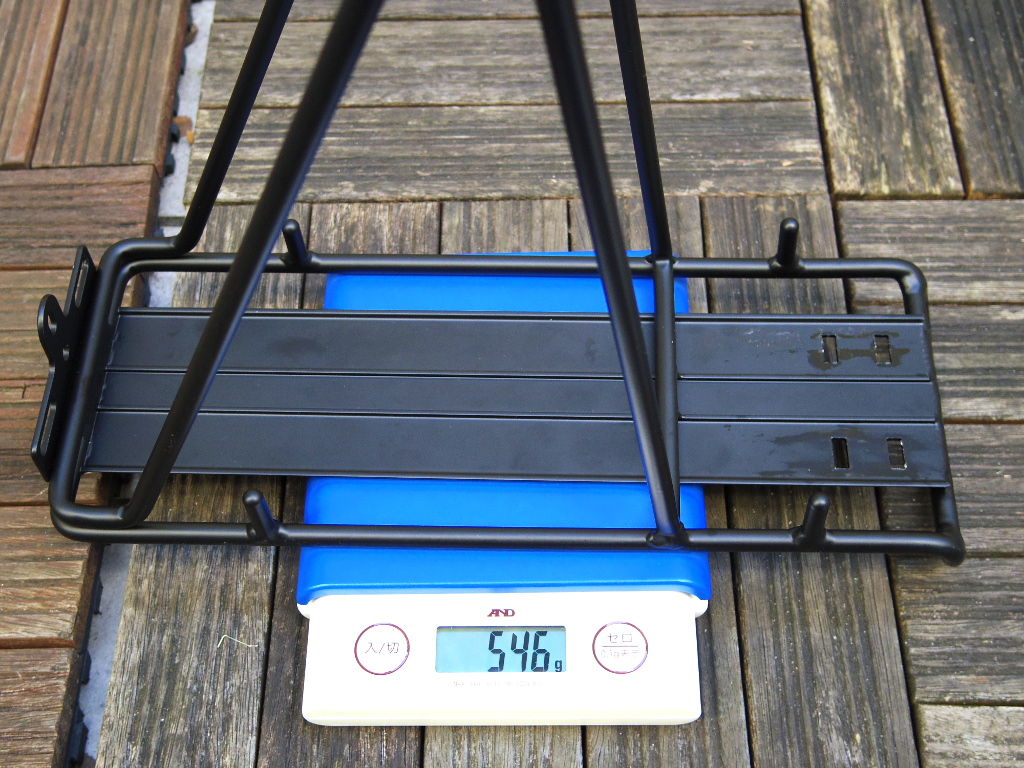 従いまして、多少なりともの軽量化を念頭に、アルミパイプの「CBA-1」を購入しました。アルミパイプ製で、重量も約575g(取付金具を除く)とあります。実際に測ってみると、公称値より軽く、546gでした。