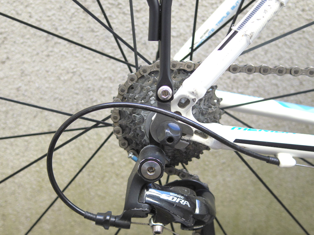 幸いにも、私のロードバイクのフレームのリアエンドは、VIVAクイックエンドアダプターをこのように装着できる構造だったため、リアキャリアからの荷重を受け止めても、アダプターが回転しないような取付位置を確保することができました。