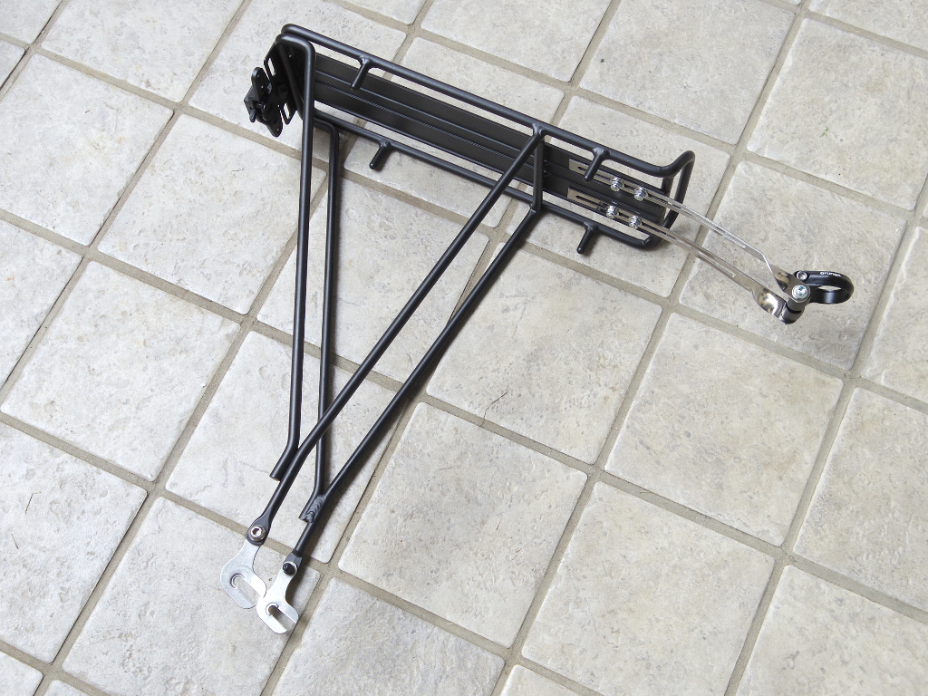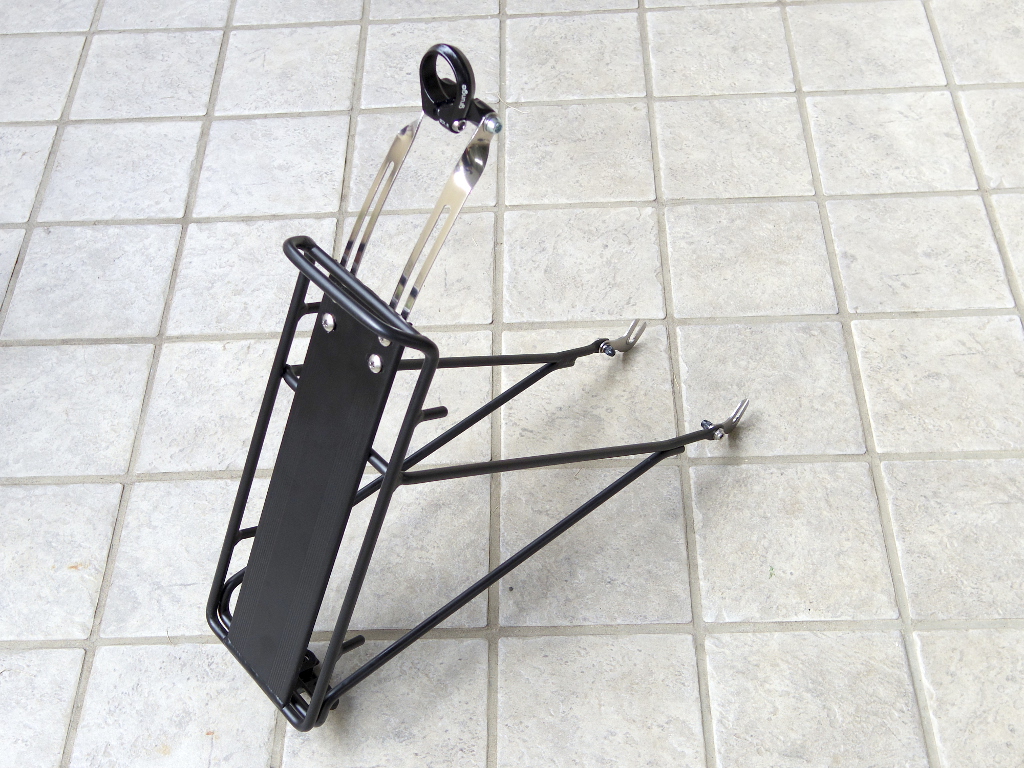 しかし、このようなシートポスト取付型は耐荷重がせいぜい10kg。シートポストから真横に延ばすような構造で、真下への荷重を直接受け止める仕組みにはなっていません。したがって、大きめのパニアバッグをがっちりと取り付けるためのキャリアとしては不安が残ります。