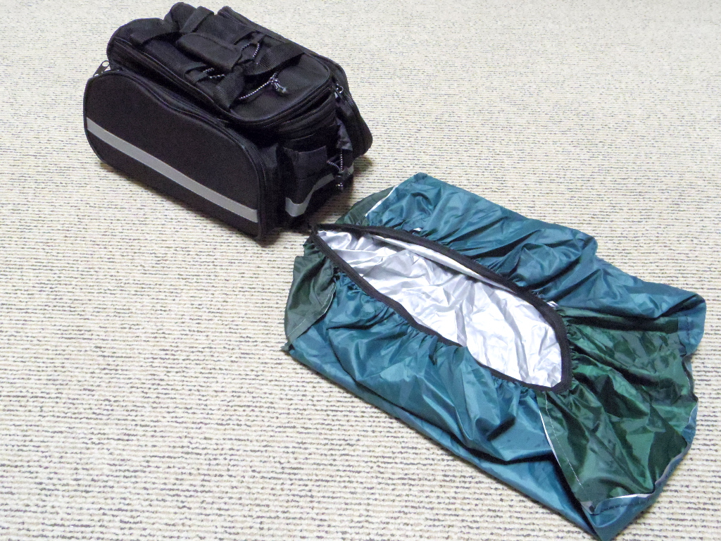オルトリーブのようにバッグ自体が完全防水ならばよかったのですが、このリア・トランク・バッグは完全防水ではありません。その代りにバッグ全体にかぶせるレインカバーが本体底部に収納されています。