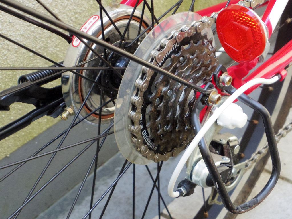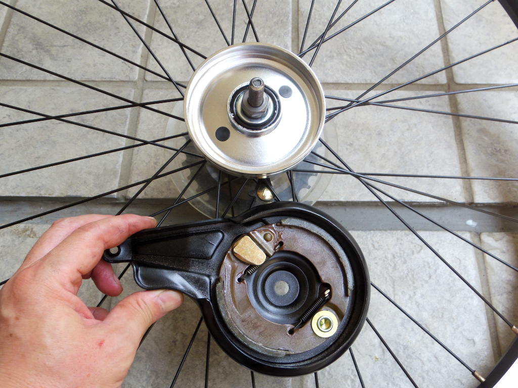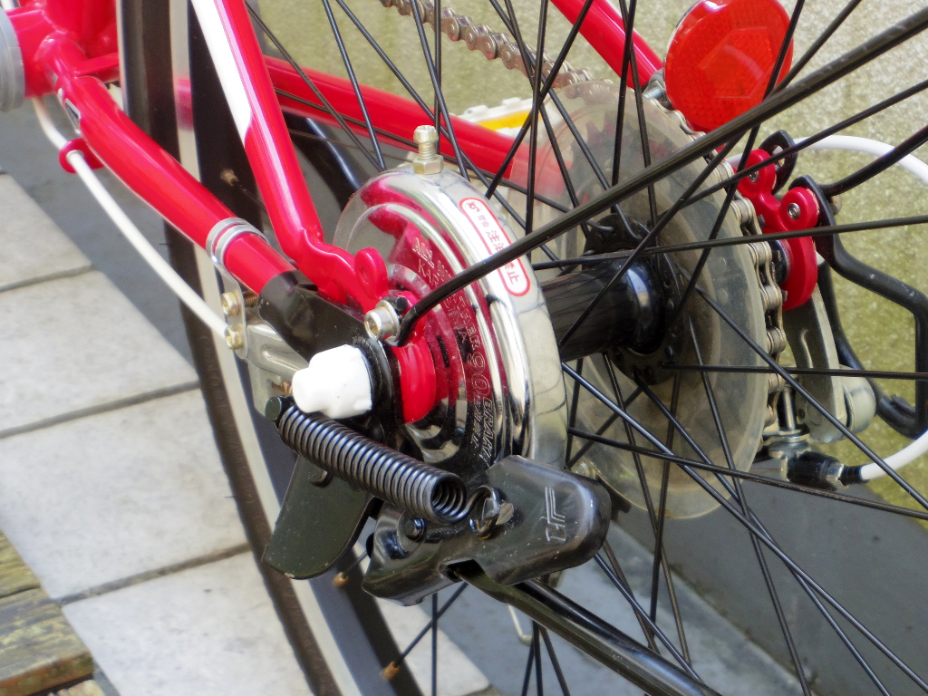 先日、上(長男)の子供が「フロントブレーキが鳴く」と言ってブレーキを交換したばかりですが、今度は下の子供が「リアブレーキが鳴く」と言ってきました。重なるときは重なります。話を聞くと、特に雨の時に大きな音が鳴って恥ずかしいとのこと。雨で濡れた時に音が鳴るのはバンドブレーキの宿命みたいなもの。安価なブレーキの弱点です。