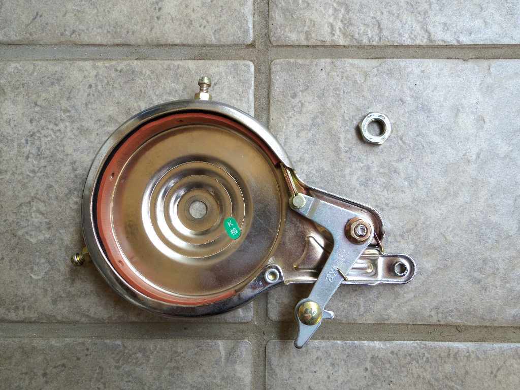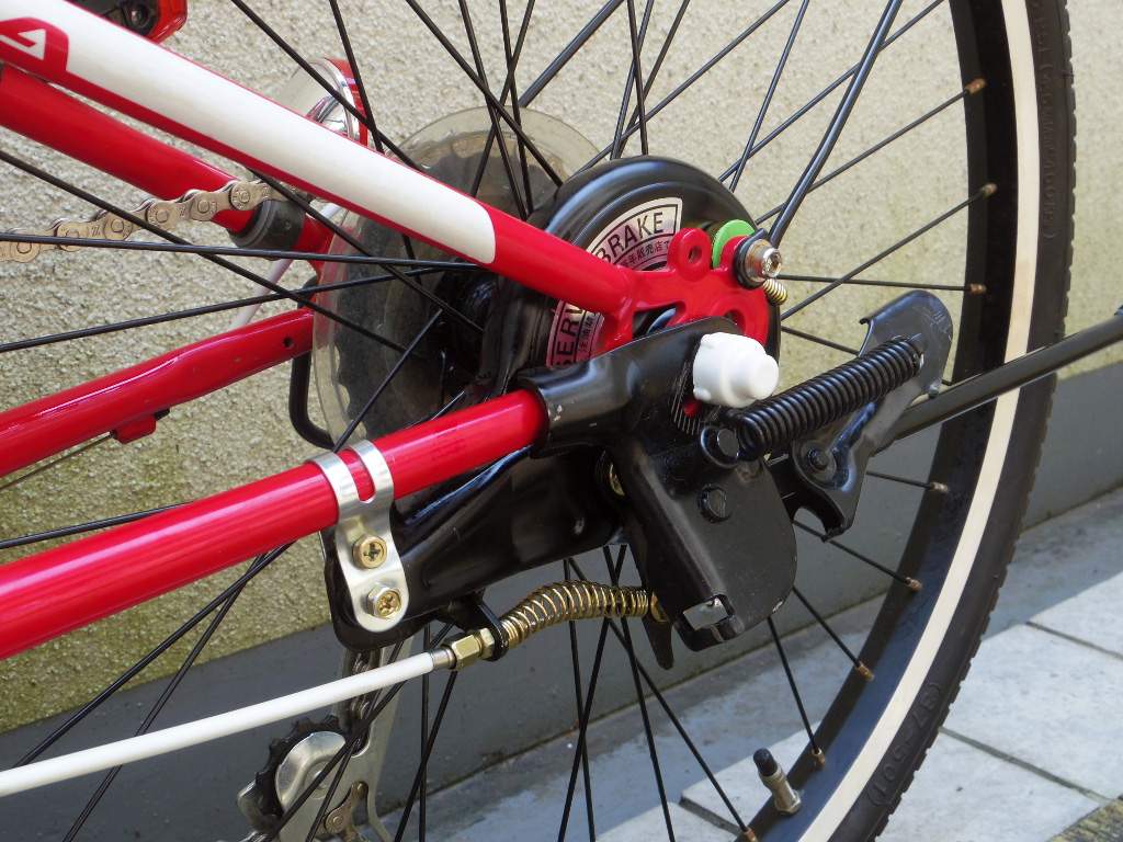 子供用自転車に付いていたバンドブレーキが鳴き出したので、サーボブレーキに交換しました。 |