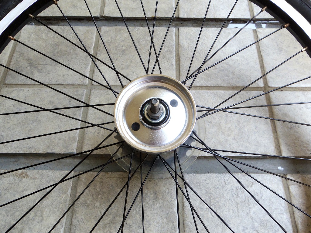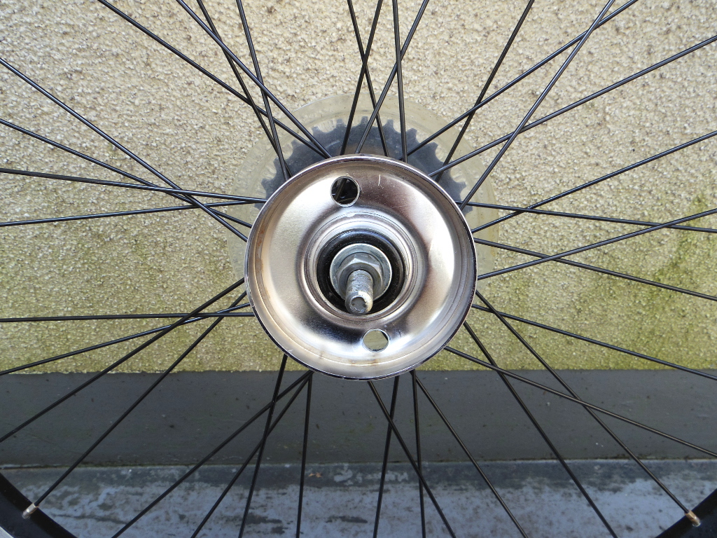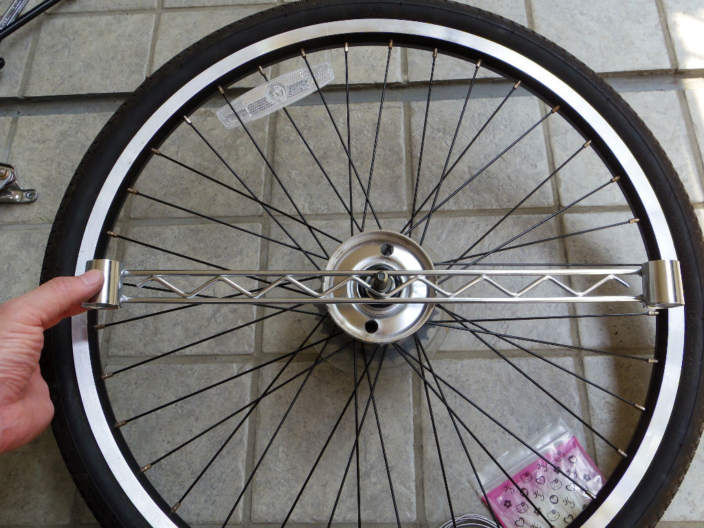 まずは、後輪を外します。クイックリリースタイプではありませんが、車軸を留めているナットを外せば簡単に後輪が外れます。