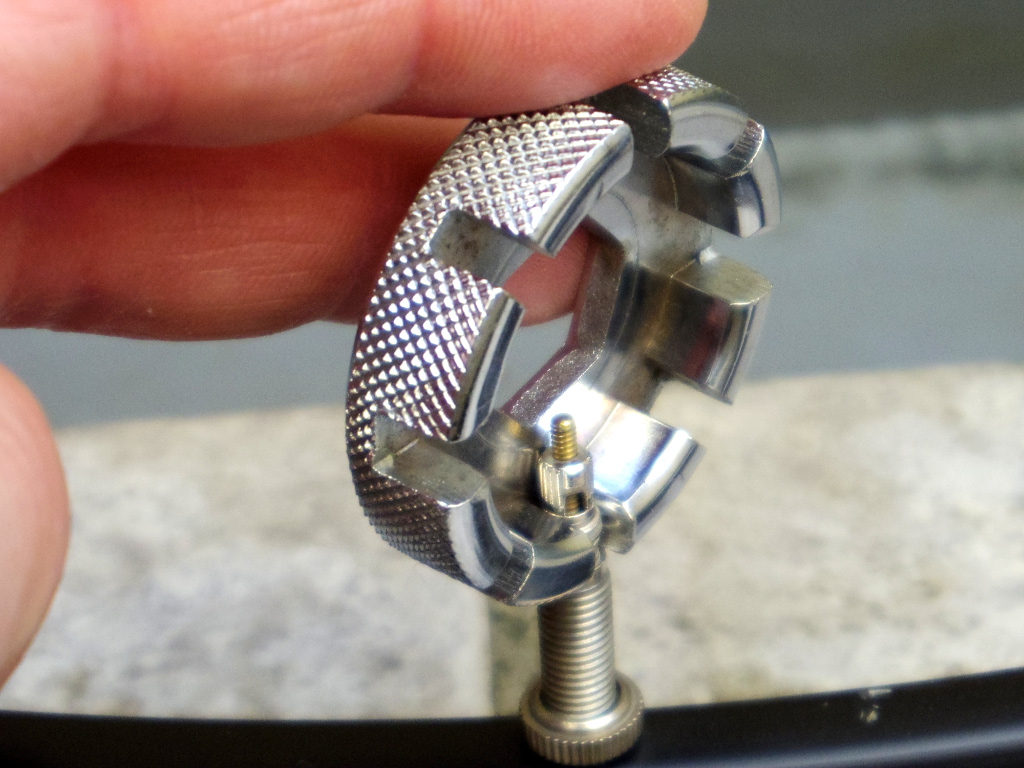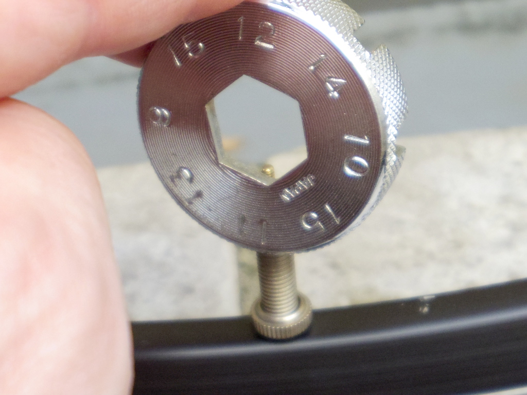 ラジオペンチ等で締めても良いと思いますが、力の加減が難しいので、私はスポークニップル回しを利用しています。