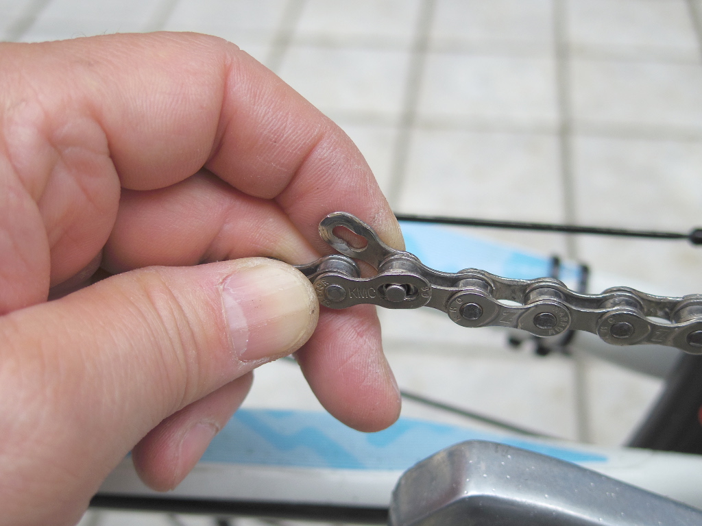 私が利用している8速対応チェーン「KMC Z7」は、ミッシング・リンクが付いているので、チェーンの着脱には「チェーン切り」が不要です。