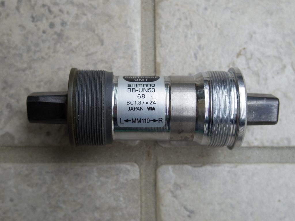 ロードバイクを買ってから4年弱。購入時に装着されていたBBが劣化したので、新しいBB(SHIMANO BB-UN53)に交換しました。 |