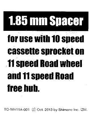 下記のように10速の場合しか書いてありませんが、このスペーサーを使えば、8,9速のスプロケットがこの RS21 で使えます。10速スプロケを使う場合は、さらにスプロケ側に付属の1.0mmスペーサーを使う必要があるという情報も散見されます。