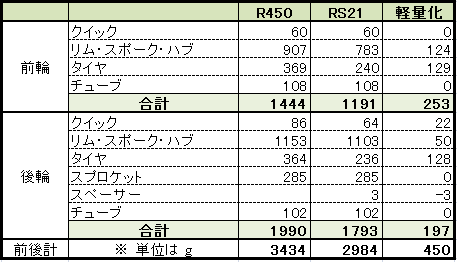 その後、実は大変な違いがあることがわかりました。急加速した時のレスポンス、いわゆる「かかり」が全く違いました。以前のホイールでは、踏んだ時に自転車を頑張って前に進める感触だったのですが、この RS21 に替えた後は「自転車が付いてくる」感触に変わりました。ホイール(特にリムなどの外周)の軽量化は、加速時に違いが分かるものだと改めて認識しました。