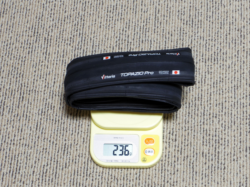 今回、タイヤも新調しています。雨の日は極力乗らないし、コーナーを攻めたりしないので、一回履いてみたかったスリックタイヤ Vittoria TOPAZIO Pro 700Cx23 を購入しています。