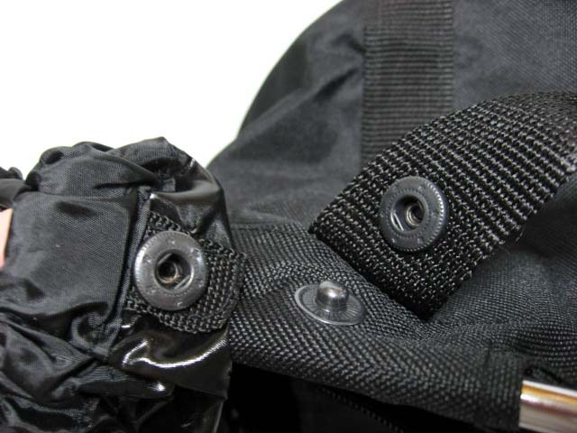 レインカバーにはスナップが付いていて、ハンドル部に装着されたスナップにはめ込むように設計されています。