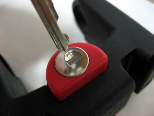 (鍵穴の横にある溝に鍵の先端を当てるとうまく入る)