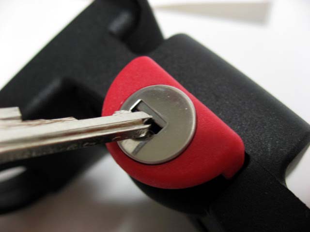 したがって、ガードプレートの中央に鍵の先端を当てて押し込んだのでは、カギは入って行きません。そうではなく、鍵穴の横にある「溝」に鍵の先端を当ててゆっくり鍵を押しこんでゆくようにします。