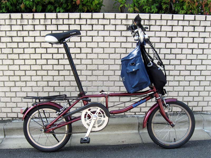 小径自転車に買い物用バッグの取り付け