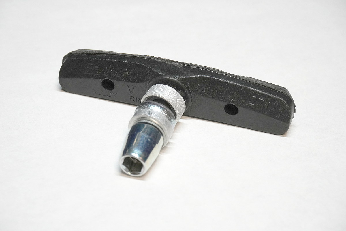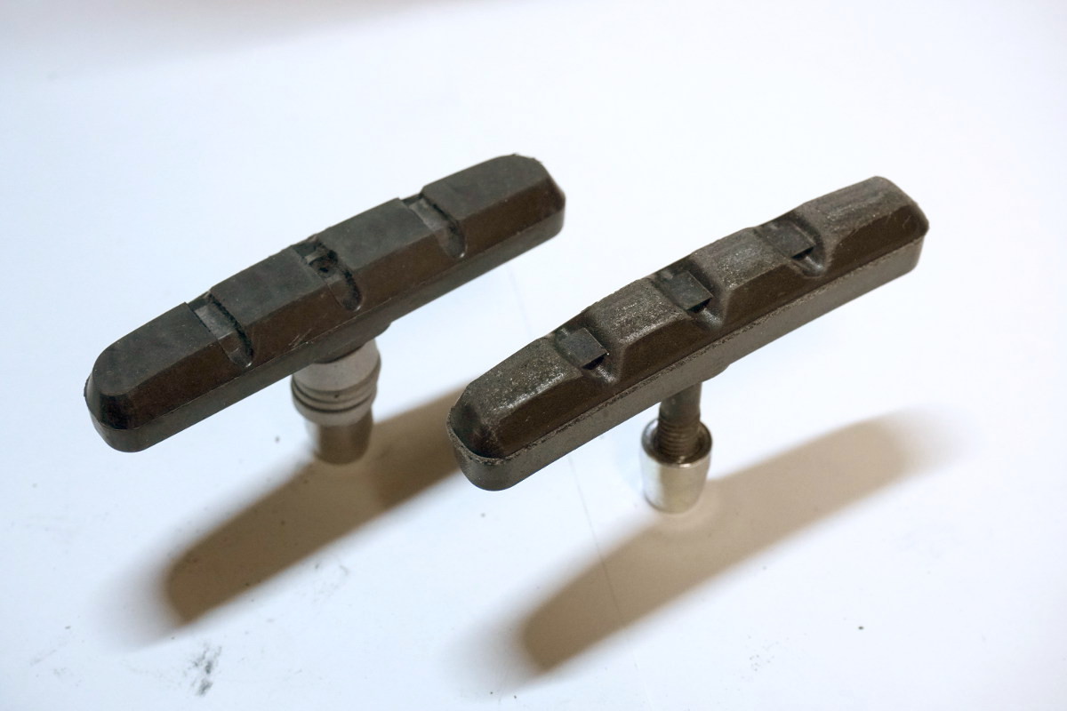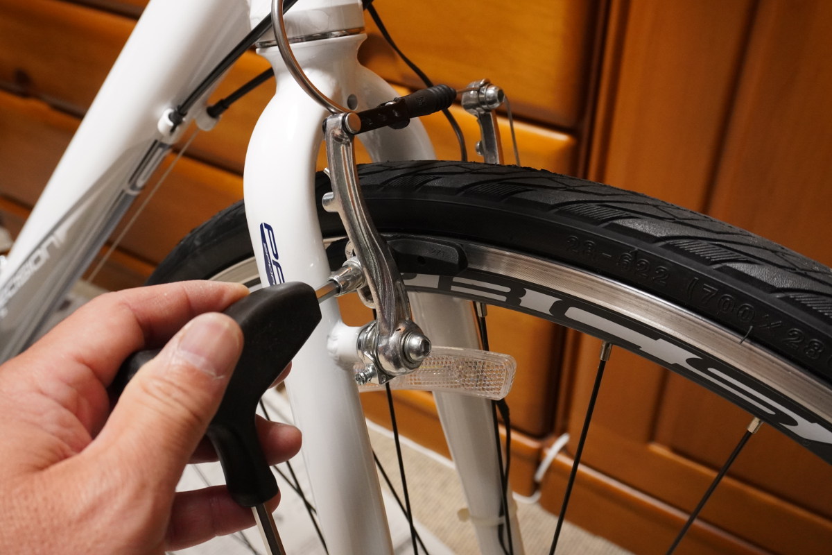 この自転車自体の問題なのか、Vブレーキの宿命なのか、はっきりしませんが、この自転車の前輪ブレーキは、派手に鳴きます。その音が大きいため、前輪ブレーキを使うことがはばかられるほどです。この状態は安全性の低下につながるため、早期解決を図りたいところでした。