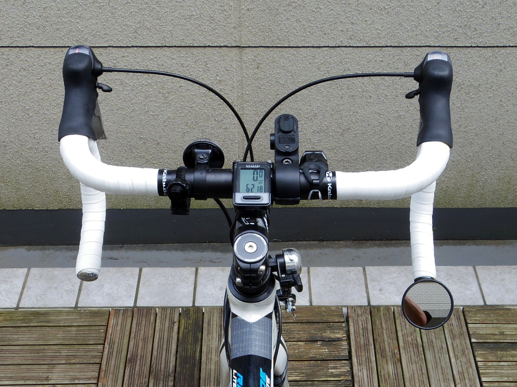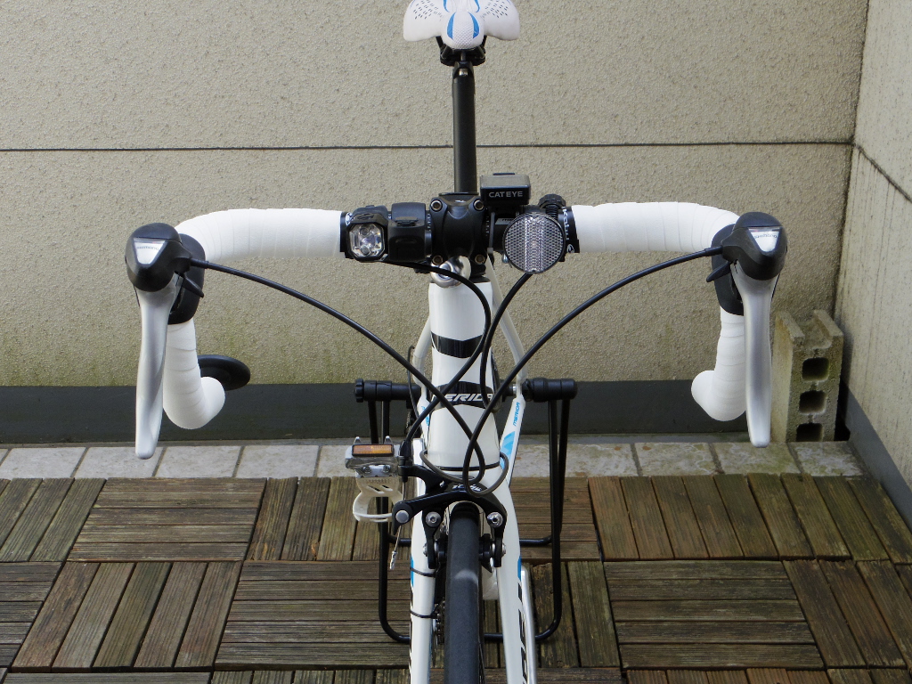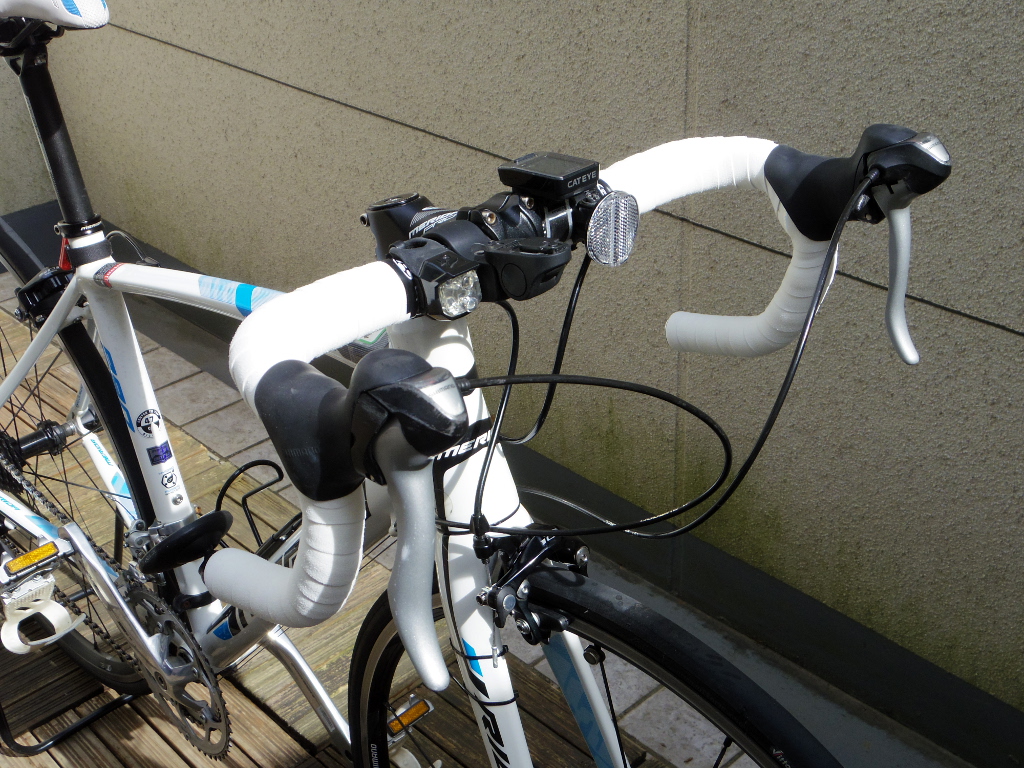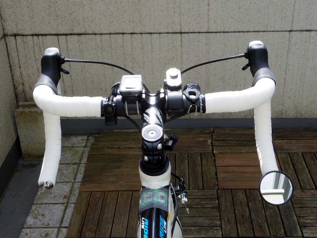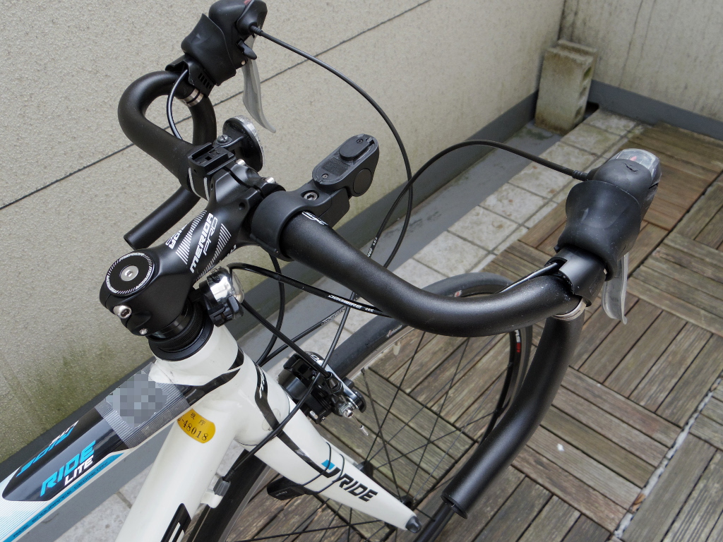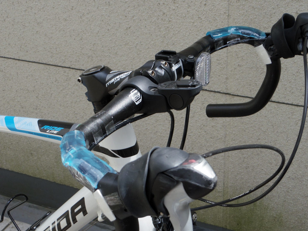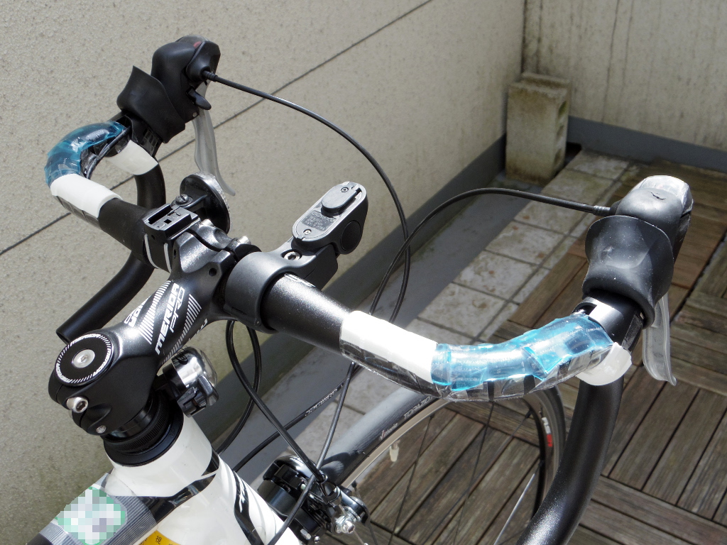旧バーテープの除去と休憩も含め、作業時間2時間弱。完成しました。遠目に見てもハンドルが太くなったのが分かります。