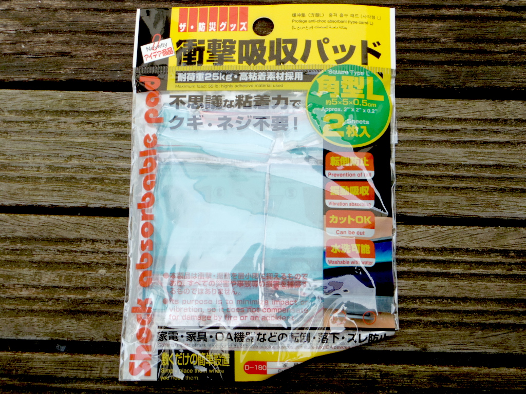 振動吸収効果を高めるため、今回はさらに「これ」を仕込むことにしました。100円ショップで買ってきた衝撃吸収パッドです。