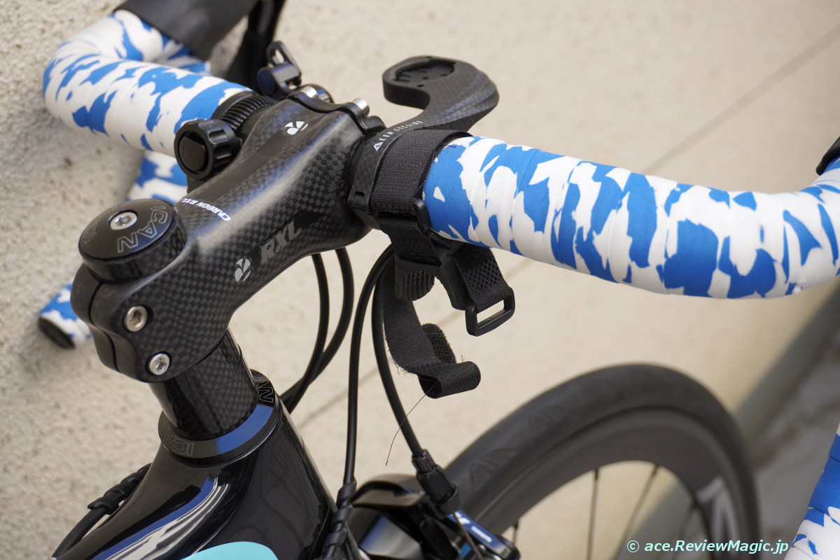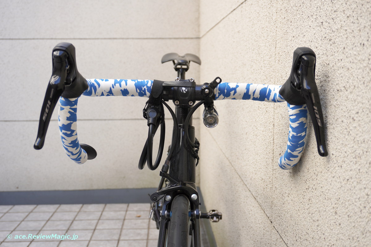 ハンドルの中央に近い部分に付ければ、走行中の各種操作の邪魔にはなりません。また、空力上もそれほど問題となるような状況にもなりません。