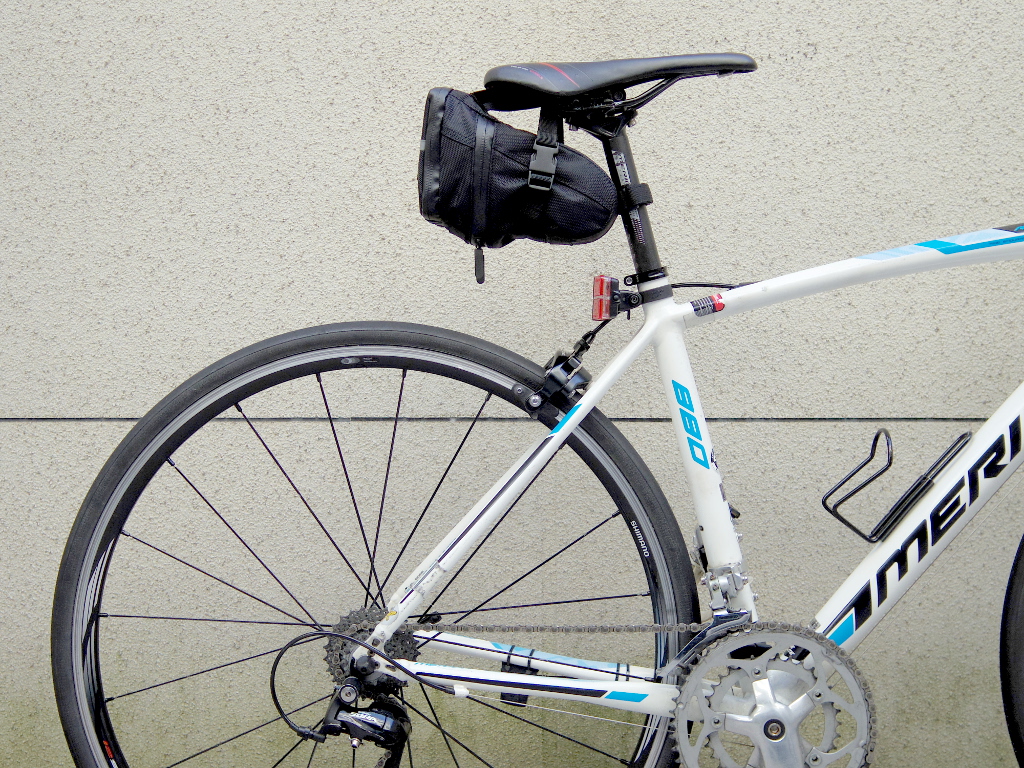 しかし、サドルバッグを取り付けると、車体の重心が上方に移動してしまいます。通常走行の際はそれほど気になりませんが、ダンシングをするシーンでは、その重心が高くなったことが如実に感じられます。ましてや、私のカーボン・ロードバイクには、100g程度の超軽量カーボン・サドルを付けていて、重心を低く抑えています。そのメリットが、ツール満載のサドルバッグで打ち消されてしまうのは避けたいと考えていました。