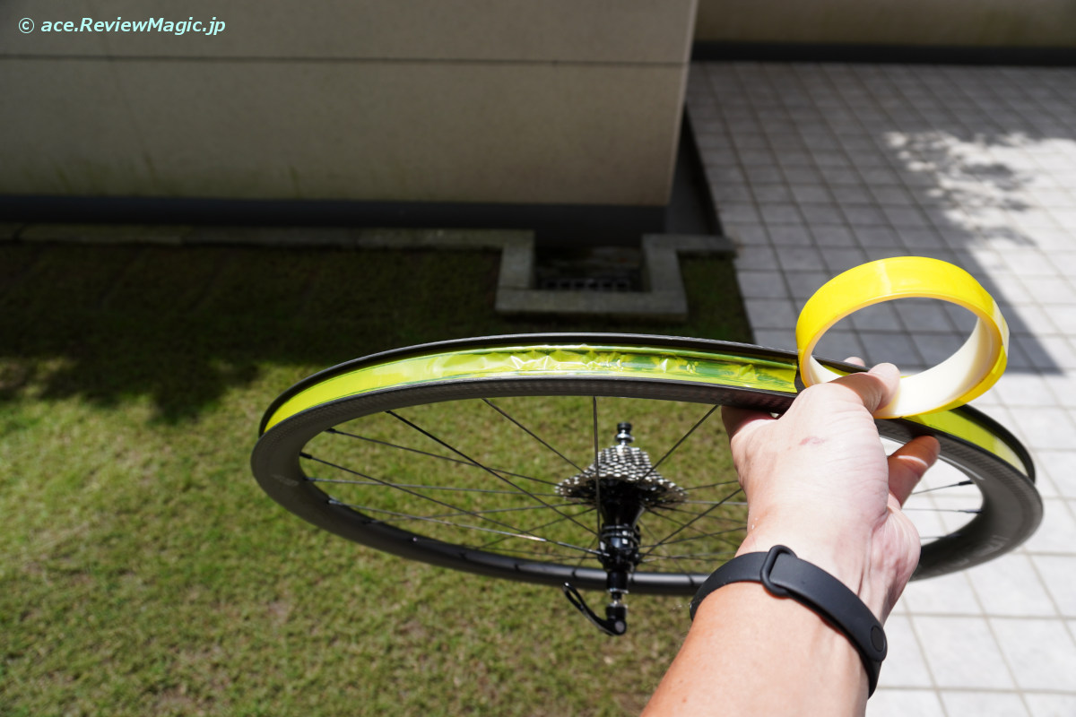 装着するチューブレス・タイヤは最近評判が高い「Continental GRAND PRIX 5000TL」を選択。そのタイヤは海を越えて来るため、すぐには到着しません(7月末以降)。その間、下準備をすることにしました。それは、リムテープの貼り付けと定着です。タイヤが到着するのが少々先なので、それまでにできる準備は済ませてしまおうという魂胆です。