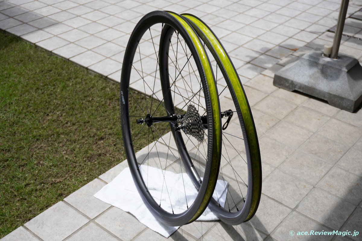 その理由は、チューブレス・タイヤを装着したホイールは、内部にタイヤチューブがないため、回転時の内部のチューブとタイヤとの摩擦に起因するパワーロスがなく、転がり抵抗が低いということ。また、タイヤがしっかりしていて、構造上「リム打ちパンク」が発生しないため、空気圧を低めに保つことができる、すなわち乗り心地が良いということ。