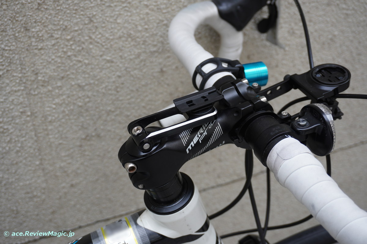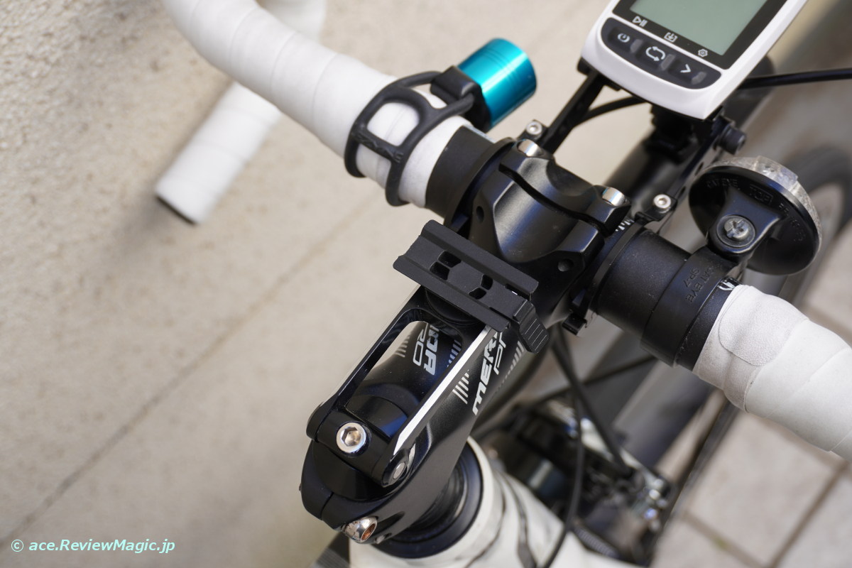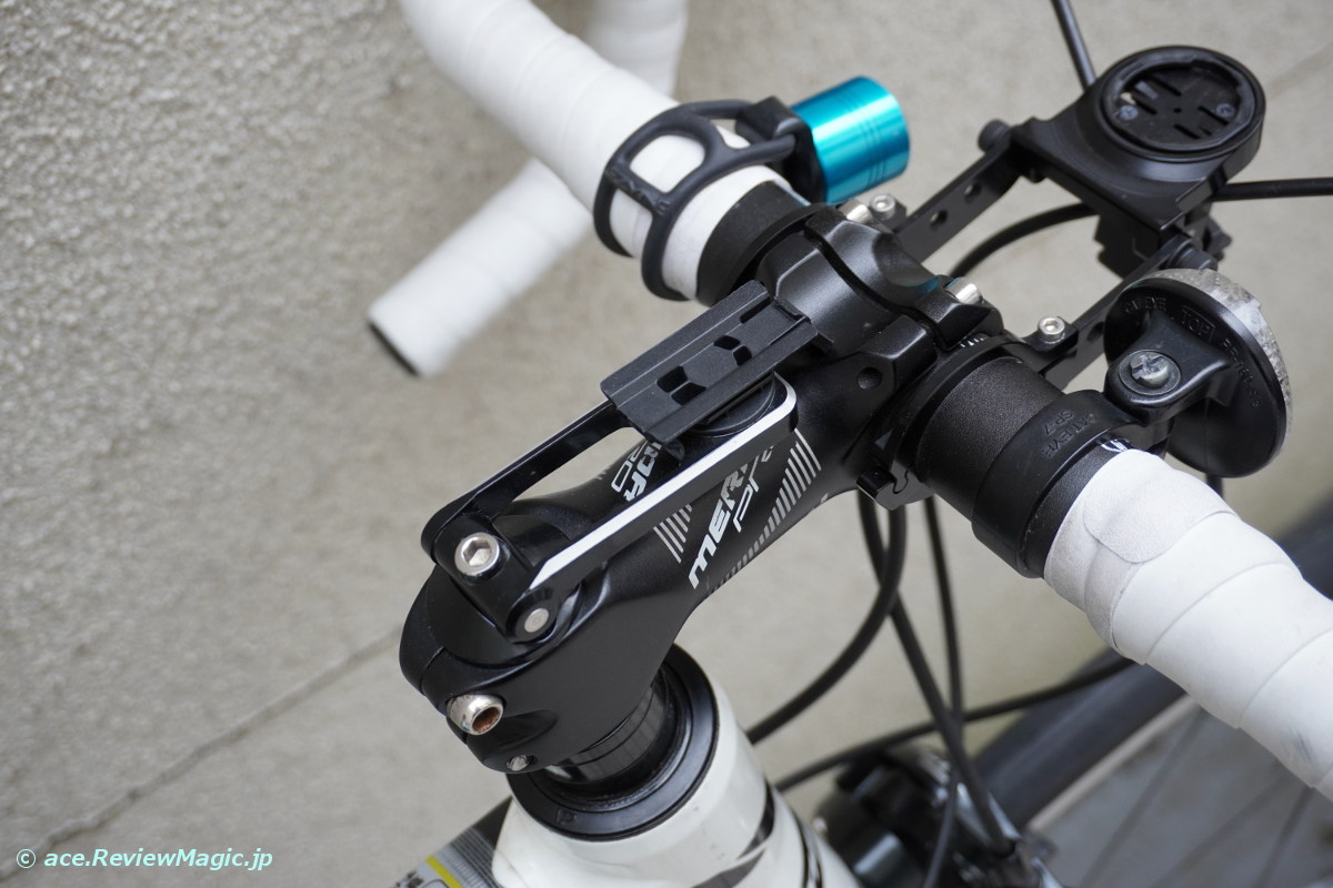 私は、RECマウントを使って、サイクルコンピューターをハンドル中央前方に取り付けています。サイクルコンピューターと共存させる必要があります。その共存性ですが…