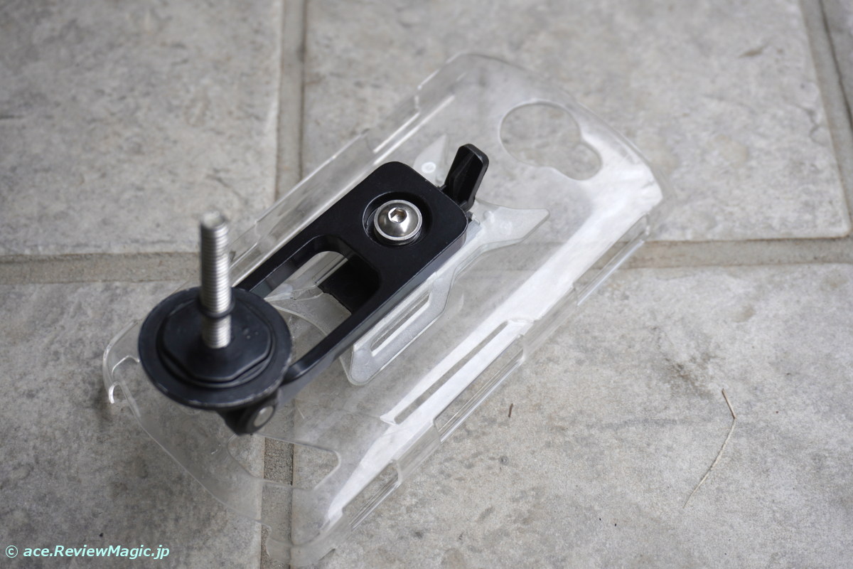 このマウントは、スマフォのマウントが不要な場合は、アタッチメントを外しておくことができるので、その場合はスマートな外観です。このマウントは、六角レンチで容易に着脱が可能ですが、邪魔にならないので、そのまま付けておいても良いレベルです。