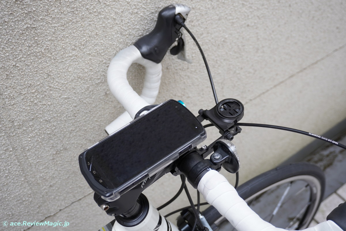 マウントのアームの長さが適切なので、スマフォの取り付け位置はちょうど良い場所に収まり、サイクルコンピューターと干渉することはありませんでした。