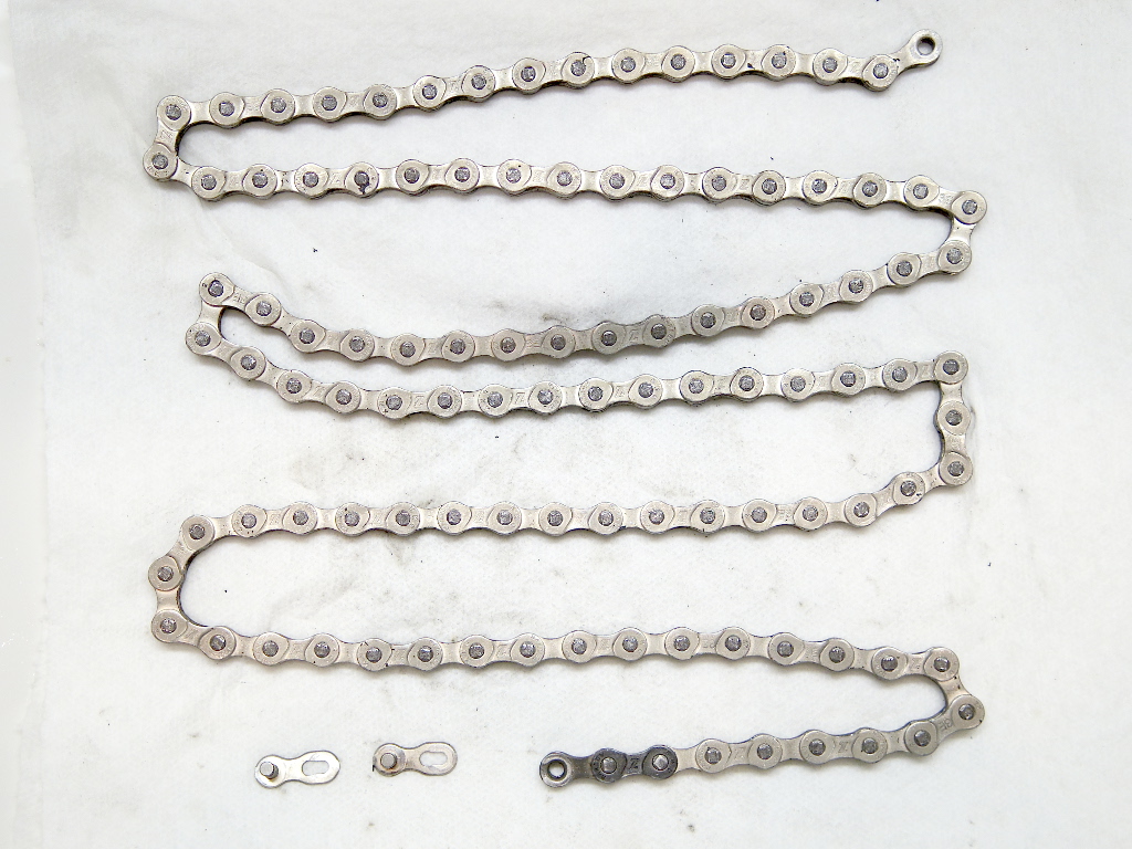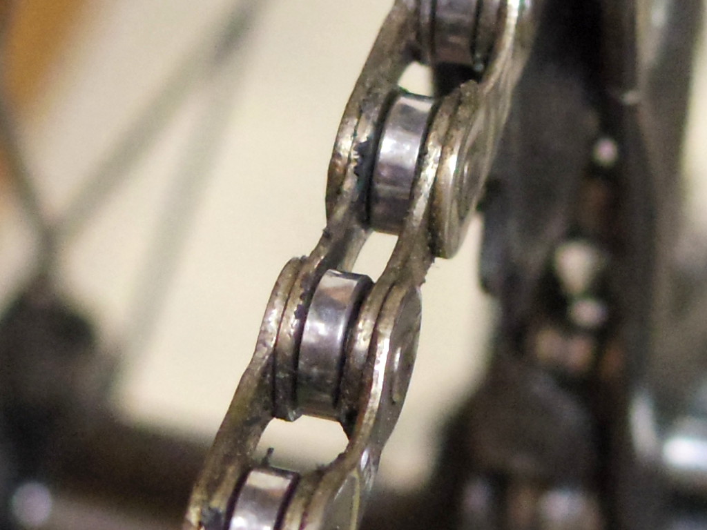 それでも、だんだんとチェーンは汚れてゆくもので、チェーンクリーナーなどでチェーン内部にこびりついた汚れを取り除いてやらないと、ウエスで拭ききれない部分には汚れが蓄積して行きます。