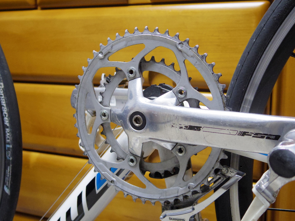 あとは、きれいになったチェーンを再度セットします。ただし、せっかくチェーンを外したので、フロントクランク、