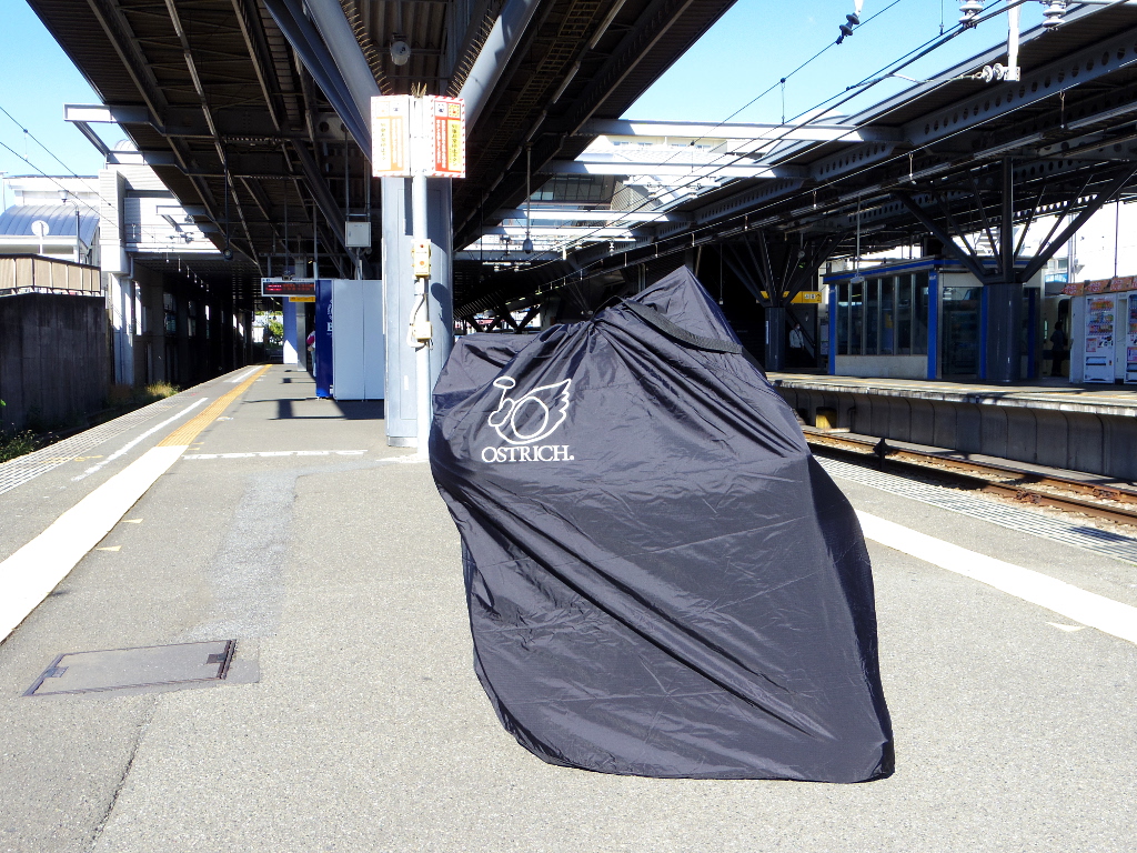 軽量小型の輪行バッグ「オーストリッチ L-100」を使い、自転車を電車に乗せましたので、降りてからは自転車を組み立て、輪行バッグを仕舞います。時間としては20分程度の作業です。