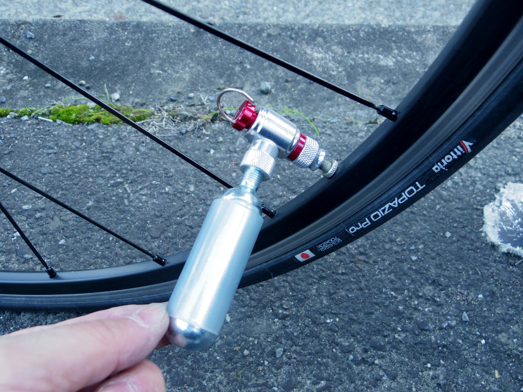 そこで、予備チューブへの交換となりました。今回、備えのために持っていた PWT の CO2 インフレーターと Airbone 製の超小型インフレーターが役立ちました。